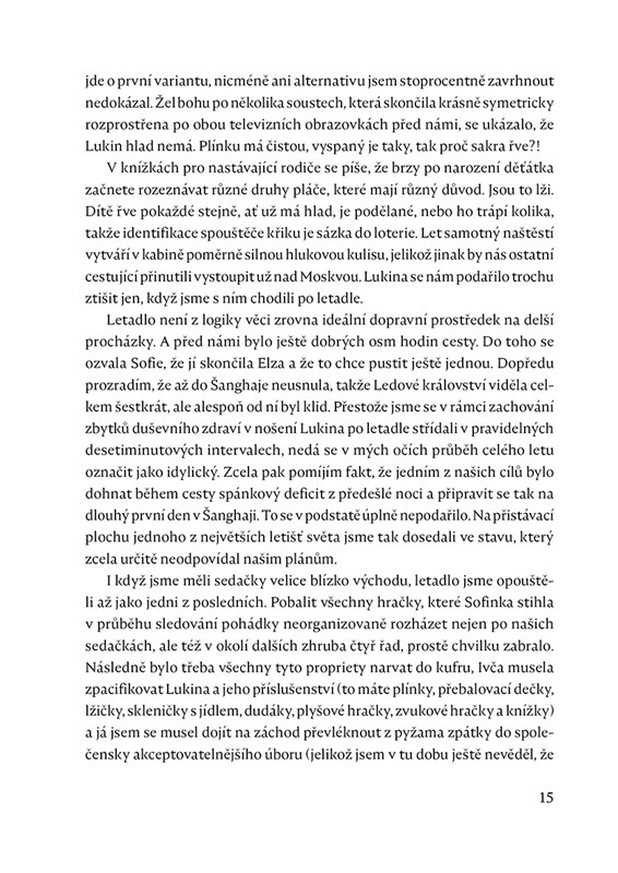 Společně s manželkou a dvěma malými dětmi strávil Lukáš Mohelský tři nezapomenutelné roky na pracovním pobytu v Šanghaji. V jeho průběhu se navíc rozrostli o pátého člena, u jehož porodu byl osobně přítomen. Bohužel jen do chvíle, než vyděšen postupem místních porodníků omdlel a tvrdě dopadl na nehostinnou nemocniční podlahu. Celá rodina měla díky výjezdu do Číny unikátní možnost rozšířit si obzory. Když ovšem viděl syna trpět již potřetí rotavirovou nákazou, případně když dcera bezmocně ležela na šanghajském betonu přejeta a zavalena tuk-tukem, začal váhat, zda s tím rozšiřováním obzorů nezašli příliš daleko.