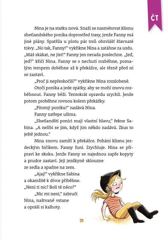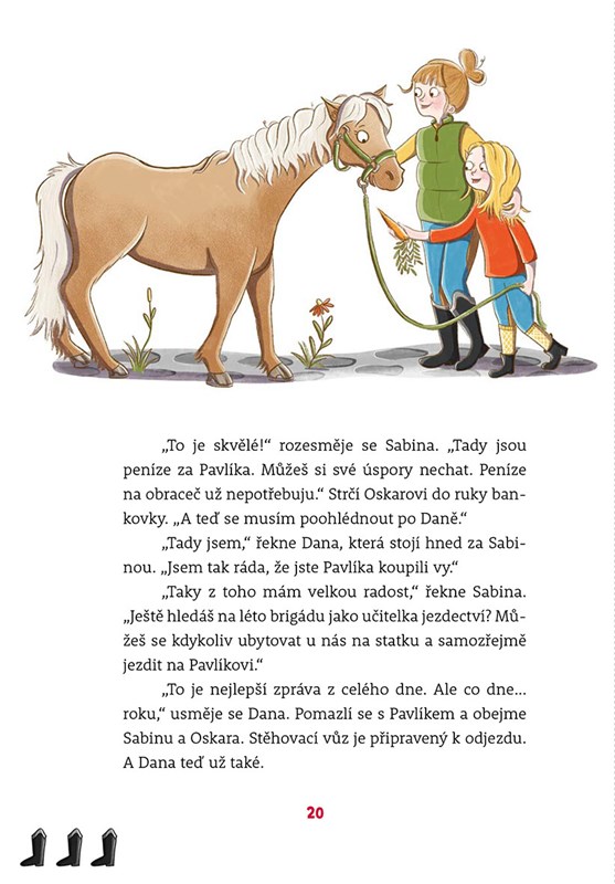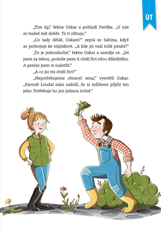 Na statku Blatouch se pořád něco děje. V pondělí stájník Oskar zjistí, že kobylka Fanny neprojde dveřmi na dvůr. V úterý na statek přibude nový přírůstek. Ve středu Lasse zjistí, že jízda na koni je i pro kluky, a ve čtvrtek se děti na hodině jezdectví poučí, že pýcha předchází pád. Chcete se dozvědět, co se odehraje v pátek, v sobotu a v neděli? Tak se pusťte do čtení.