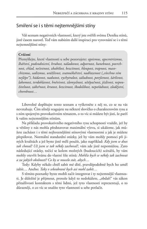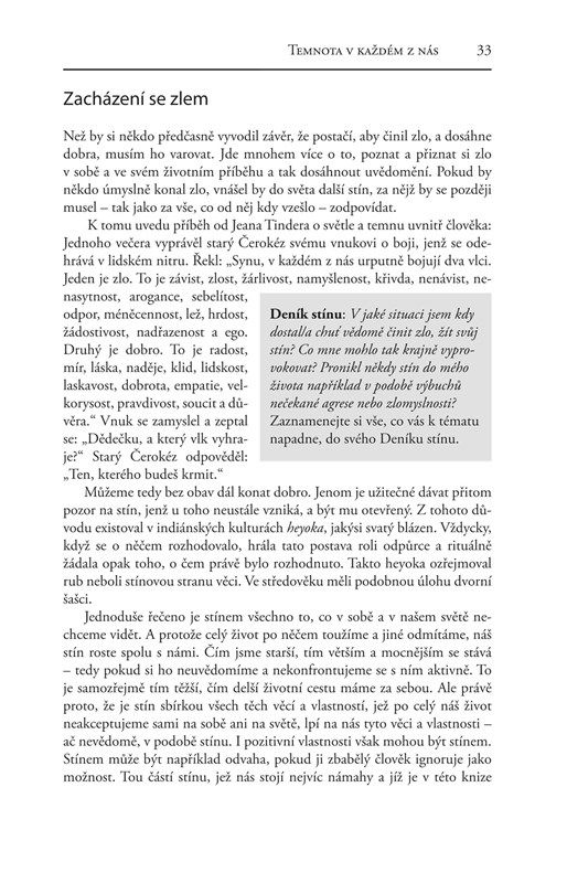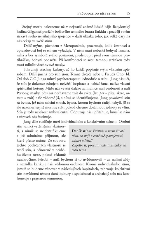 Ruediger Dahlke nám ukazuje, jak svůj stín vypátrat a jak se s ním konfrontovat, abychom ho nakonec mohli přijmout, integrovat do své osobnosti, a možná dokonce i začít milovat. Ten, kdo se pustí do práce na svém stínu, jak je představena v knize, se stane otevřenějším, laskavějším a tolerantnějším – vůči sobě i vůči jiným.