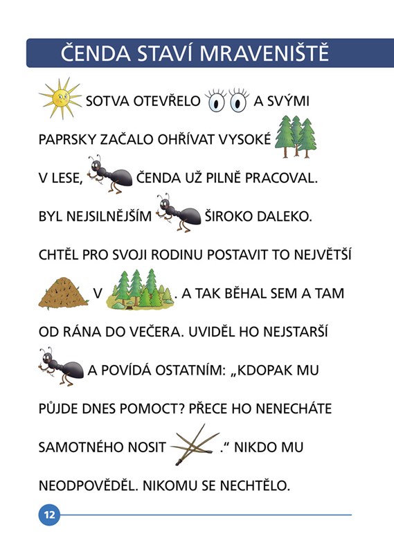 Zapojte vašeho předškoláka a nechte ho „číst“ pomocí obrázků. Naučí se sledovat text a seznámí se s velkými písmeny abecedy. Kniha je vhodná také pro prvňáčky, kteří se učí číst genetickou metodou.