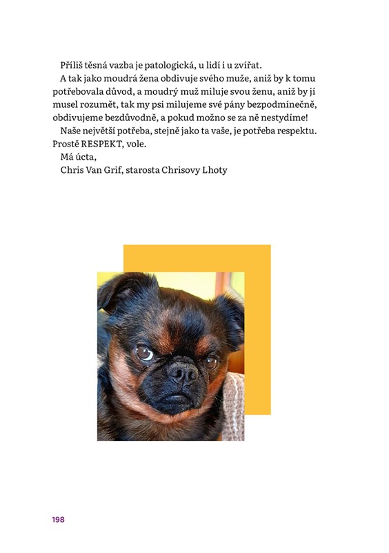 Kniha psaná člověkem a psem o světě současném, ale i o tom virtuálním a smyšleném.