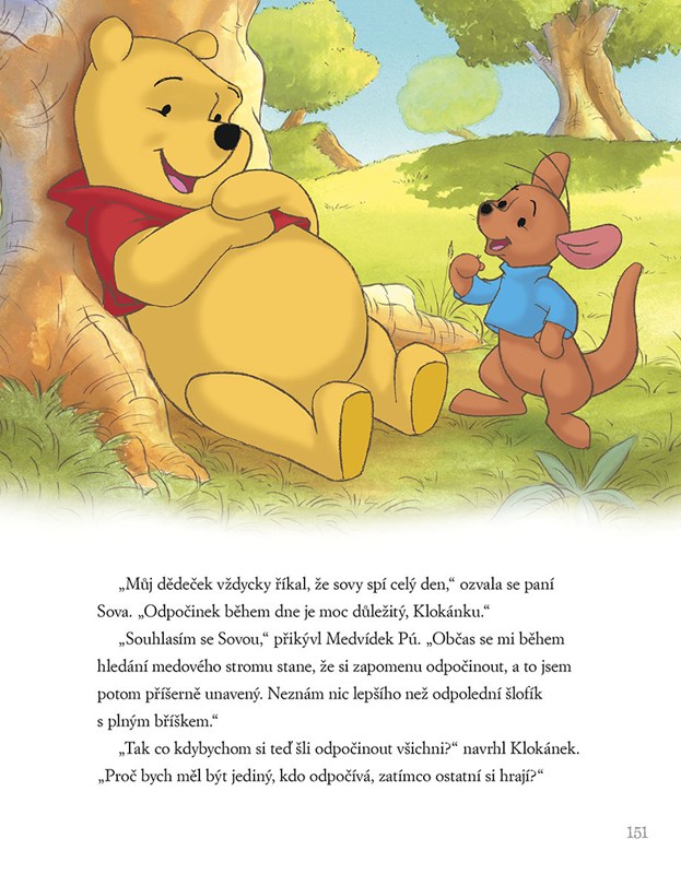 Oslavte s Púem a jeho kamarády narozeniny, zahrajte si s Klokánkem, rozveselte Králíčka, přestěhujte se s Tygrem, přivítejte Zimu, kempujte s Prasátkem a mnoho, mnoho dalšího. Všechny pohádky v této knize jsou právě tak dlouhé, abyste je přečetli za pět minut až do šťastného konce.