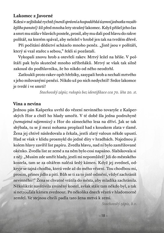 Krátké příběhy vypovídají o reálném životě lidí na území Šumavy. O všem, co jim osud přichystal, co museli strpět, co obětovali, ale třeba i jaké humorné příhody se jim kdy udály.