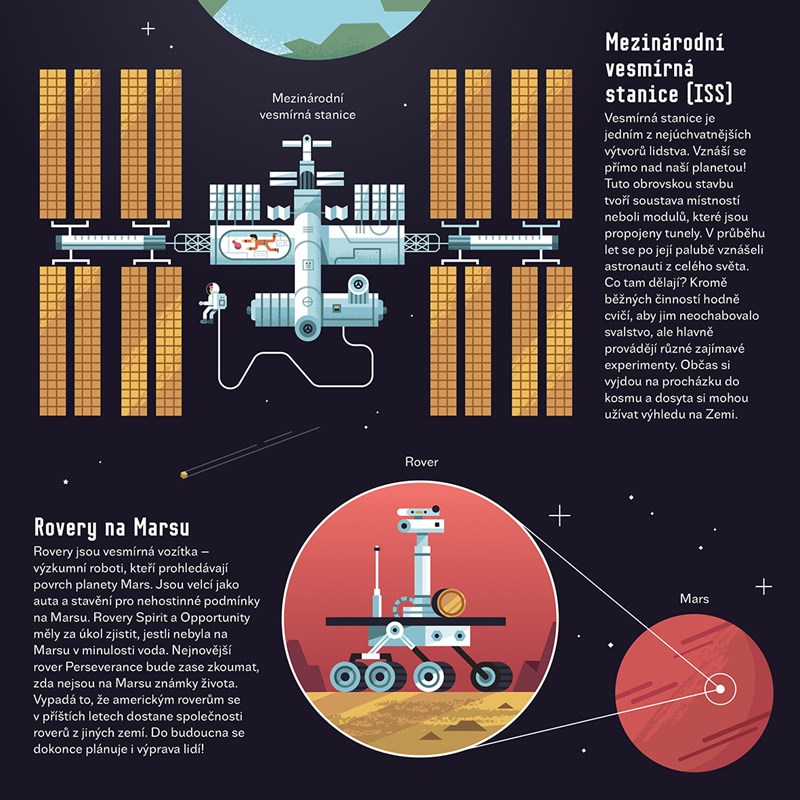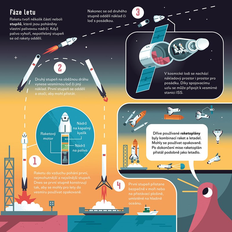 Společně s Karlem v této knize zjistíte, že vesmír lidé dobyli díky raketám, poznáte nejzajímavější vesmírná plavidla a nahlédnete do zákulisí astronautského výcviku i samotného startu rakety.