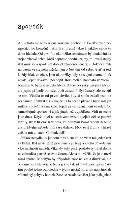 Svatba je pro většinu žen příslibem krásného života. Stejně to vnímá i Alena, když se jednoho srpnového rána vdává. Jenže když se přestane vznášet na obláčcích něhy a radosti, přijde tvrdá realita. Kvůli manželově nevěře sundává růžové brýle a zjišťuje, že není vše takové, jaké si to na začátku vztahu vysnila. A je jen a jen na ní, jak se z té šlamastiky dostane. Po rozvodu musí zajistit nejen péči o děti, postarat se o domácnost, ustát pár šílenců na seznamce, ale hlavně se z toho všeho nezbláznit. Uvědomuje si, že ji každý nový vztah posouvá o kus dál, to ale ještě netuší, že ten největší kalibr na ni teprve čeká.