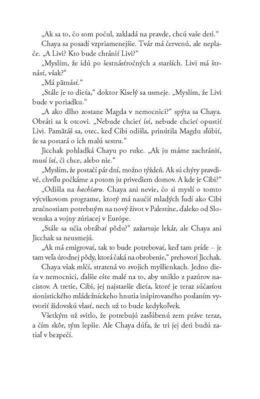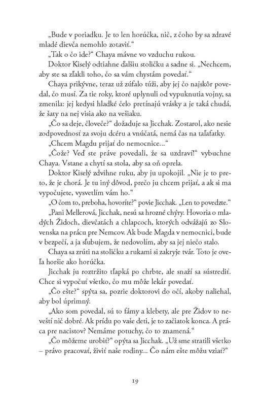 Len sedemnásťročná Magda, zostala so svojou matkou a starým otcom vo Vranove nad Topľou, ukrývala sa u susedov v podkroví alebo v lese, keď členovia Hlinkovej gardy hľadali Židov. Podarilo sa jej unikať, ale nakoniec aj ju odviezli do tábora smrti v Osvienčime-Brezinke.