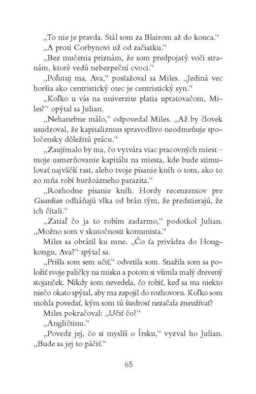 JULIAN je vtipný britský bankár, ktorý Ave predstaví honosný život, aký by si so svojím skromným platom nemohla dovoliť. Ava ignoruje svoje feministické sklony a inštinkty, nasťahuje sa k Julianovi, dovolí mu kupovať jej oblečenie a nakoniec s ním nadviaže sexuálny vzťah. Keď Juliana zavedie práca späť do Londýna, ona zostáva v jeho byte v Hongkongu a netuší, ako sa ich vzťah vyvinie.