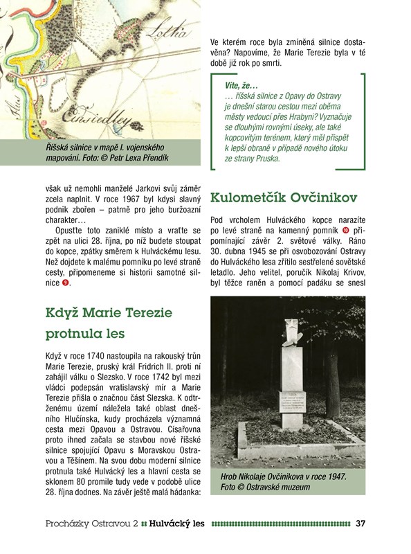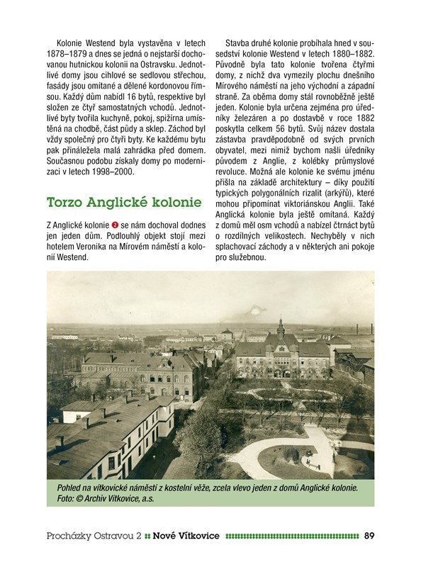 Jedinečný průvodce vám opět nabízí sedm tematických procházek. Snahou bylo vymanění se z klasického pohledu na Ostravu jako na oblast průmyslu a témat s ním spojených. Raději vychází do přírodních lokalit a méně známých čtvrtí, např. do Hošťálkovic a staré Poruby. Nevyhýbá se ani dvěma populárním městským centrům v podobě Přívozu a Vítkovic, představuje je však optikou přelomu 19. a 20. století v kontextu doby, urbanismu, architektury a jejich současných hodnot. Zcela netypickou kapitolou je pak procházka místy, kudy vedly tramvajové koleje.