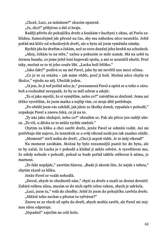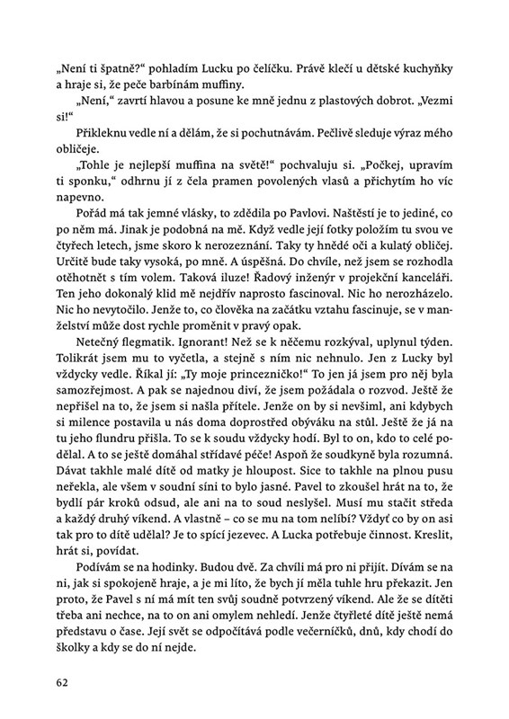 Knížka je volným souborem literárně uměleckých, ale i odborných psychologických pohledů na problematiku rozvodu. Problematiku, která je v našich, jinak často luxusních životech tím nejtěžším, čím můžeme projít. To zvláště v případech, kdy jsou do rozpadu vztahu zaangažovány naše děti.