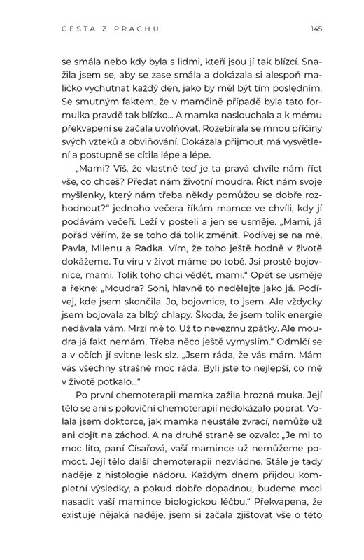 „My všichni jsme nádherné bytosti, které stvořil život. Každá bolest, kterou jsme zažili, nás jen posílila a udělala z nás silné osobnosti. Vydejte se spolu se mnou na cestu z prachu, která vás odnese do tajů vlastního života. Otočte stránku a prožijte svůj příběh skrze ten můj.“