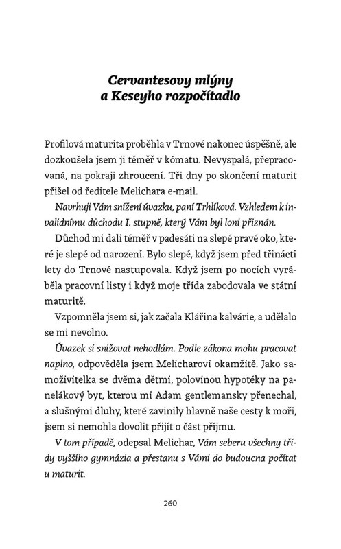Kdyby se Don Quijote pokusil svést souboj s českým školstvím, pokorně by se za pár hodin vrátil k větrným mlýnům. O tom je přesvědčená i češtinářka Tereza, jíž dělá ze života peklo byrokracie a despotický ředitel. Naštěstí má podobně naladěné kolegyně, studenty s otevřenou myslí i Čaroděje, který jí vykouzlí v duši klid spolehlivěji než Neurol. S jejich pomocí se vydává do světa příběhů… a její cesta za svatým grálem i k Hoře osudu ji zavede do nečekaných končin.