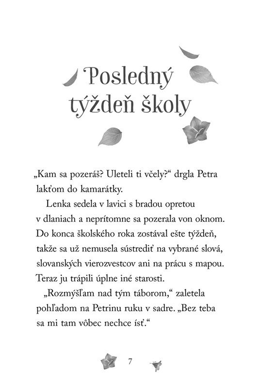 Lenka sa chystá na svoj prvĂ˝ letnĂ˝ tábor, a to hneÄŹ dvojtýždĹovĂ˝. PĂ´vodne tam mala ĂsĹĄ so svojou kamarátkou Petrou, nakoniec však odchádza sama. Trápi ju neistota, ÄŤi to bez Petry zvládne. Dokáže si nájsĹĄ v tábore kamarátov?