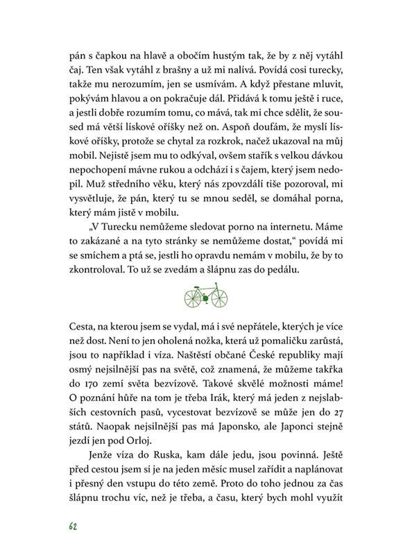 Tomík je opět na cestách. I když na kole nikdy předtím neujel víc než 50 kilometrů, rozhodl se absolvovat náročnou, 7 500 kilometrů dlouhou cestu. S padesátieurovkou v kapse, přiblblým výrazem ve tváři a nadšením v duši projel osm zemí. Potýkal se s rozpáleným Tureckem, užíval si pohostinnou Gruzii, provrávoral vodkou nasáklým Ruskem a dostal se i do ponurého Černobylu. A o tom všem vypráví s neodolatelným humorem, který vám zaručeně zvedne náladu.