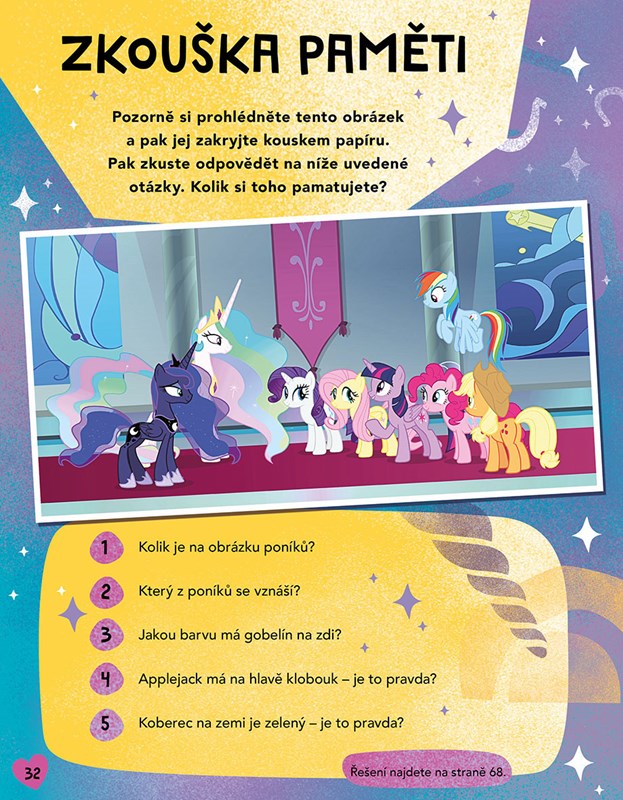 Užijte si zábavu s poníky! čekají na vás jak staré známé kamarádky z Ponyville, tak noví přátelé z celé širé Equestrie. Seznamte se s nimi, přečtěte si o jejich dobrodružstvích a pusťte se do úkolů, které si nemůže žádný poník, jednorožec ani pegas nechat ujít!