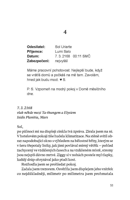 Léčitelka Lumi pochází ze Země a její choť, špička v oblasti botaniky Sol, z Marsu. Když se Sol dlouho nevrací ze služební cesty, spustí Lumi pátrání a postupně odhaluje tajemství, která před ní Sol skrývá. Ve vzpomínkách ohledává společnou minulost, o níž si myslela, že patří jen jim dvěma. Stopy ji vedou z bohatých marsovských kolonií na planetu Zemi, která je kvůli devastaci životního prostředí už jen ubohým stínem své zašlé slávy. A také do světů ztracených duší, kam dokáží vstoupit jen léčitelé. Jak se zmizením souvisí tajná ekologická skupina? A čeká Lumi a Sol na jejich meziplanetárních křižovatkách vůbec ještě budoucnost?