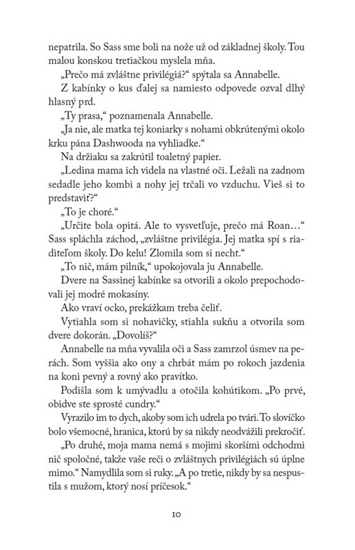 Keď som si vybrala knižku na čítanie, myslela som si, že pôjde o príbeh mladej športovkyne, despotického otca a trénera zároveň. Vlastne áno išiel, ale dôležitou témou v celom príbehu je choré a nepredstaviteľné sexuálne zneužívanie zo strany otca, veľmi ma kniha zasiahla. Ako matku, ako ženu, tak som sa do príbehu vžila, že som mala chuť vyhľadať Roan a zasiahnuť. Bolo to napísané neskutočne reálne, podrobné až znepokojúce opisy, popravde mala som pocit, že čítam memoáre. Jedno je isté, týmto debutovým románom si ma autorka získala a rozhodne si ju pridávam k obľúbeným. Kniha má moje veľké odporúčanie.