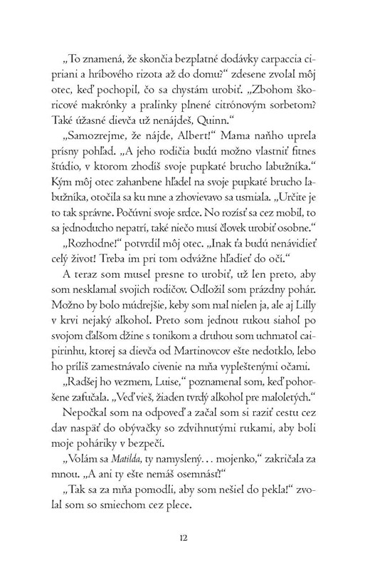 Quinn je najpopulárnejší a najkrajší chalan v škole. Nenápadná Matilda je doňho roky po uši buchnutá. Stačí jedna noc, aby sa ich životy obrátili totálne naruby. Po ťažkej nehode vidí Quinn veci, ktoré nemôžu patriť do tohto sveta. Komu sa zdôveriť, keď si všetci myslia, že mu preplo? Na prahu jeho izby sa objaví Matilda, na ktorej mu záleží tak málo, že jej povie o rozprávajúcich sochách a vyškerených lebkách, ktoré ho všade prenasledujú.