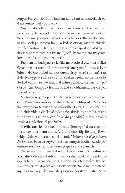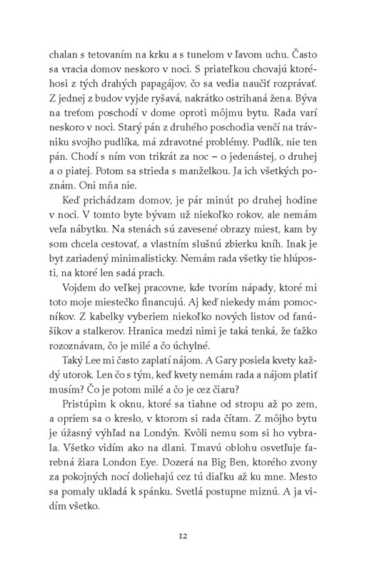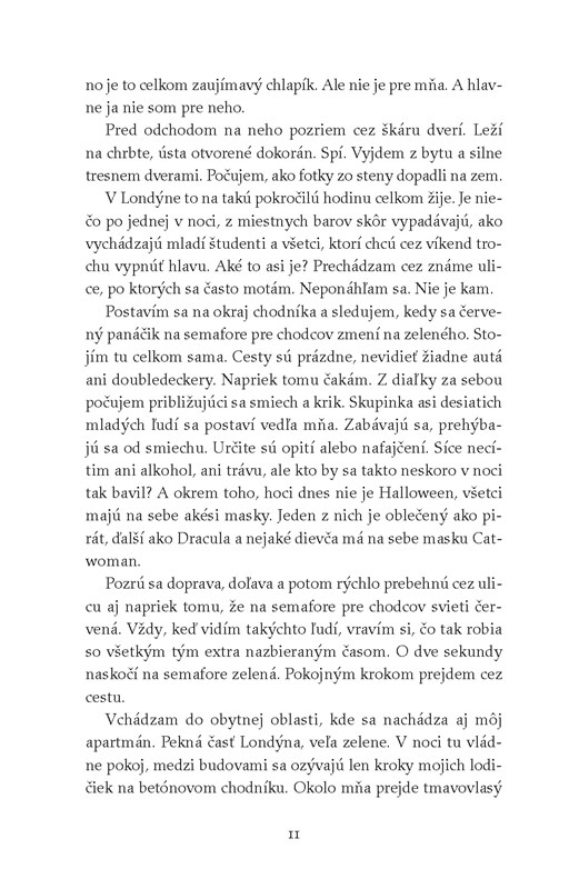 Keď sa ju však niekto pokúsi uniesť a rodina ani priatelia jej neveria, zúfalo hľadá pomoc u tajomného Bartona, ktorý sa osamelo poneviera nocami podobne ako Sara. Barton jej ukáže celkom nový svet, o ktorom netušila, a v jeho nenápadných gestách a dotykoch nachádza útočisko, ktoré tak dlho hľadala. Môžu mať napokon spoločné viac, než si kedy dokázala predstaviť?