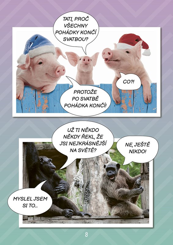 Pojďte se bavit a smát, chechtejte se, až vás bude břicho bolet. A komu to bude málo, může se smíchy i rozplakat nebo potrhat. Nejrůznější zvířecí legrácky, veselé hlody a frky, rozverné srandičky a skopičiny, rafinované opičárny, ulítlé ptákoviny, rozpustilé koniny a volovinky i žertovné štěky a psí kusy jsou tu pro vás, abyste se měli dobře. Se smíchem jde všechno lépe!