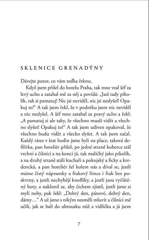 Tématem slavné novely je životní dráha číšníka Jana Dítěte, později hoteliéra a nakonec cestáře v době politických zvratů. Mnohokrát pocítil, že jím druzí opovrhují pro malý vzrůst, pro sympatie k Nacistům, proto, že má původ odloženého dítěte, pro osobitou životní filozofii. Nikdy však nezatrpkne, neoplácí nenávistí, nemstí se. Touží po bohatství a uznání ve své profesi, touží po milující ženě. Na sklonku života v šumavských lesích pochopí, že přizpůsobivost není vždy cestou ke šťastnému životu.