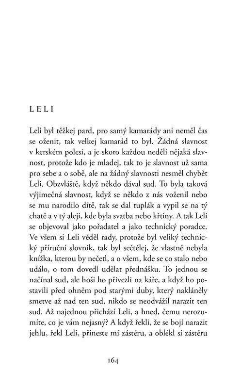 Povídky o lidech, kteří si uchovali pohled první lásky na tento svět i na často nelehký život. Lidé z Hrabalových podobenek jsou obyčejní venkované z oblasti Kerska, kam se autor vrátil do krajiny svého mládí, aby psal a psal. Toto vydání vychází z autorem zamýšleného souboru, který v nezkrácené a necenzurované podobě poprvé vyšel až jako součást Sebraných spisů Bohumila Hrabala v roce 1993.