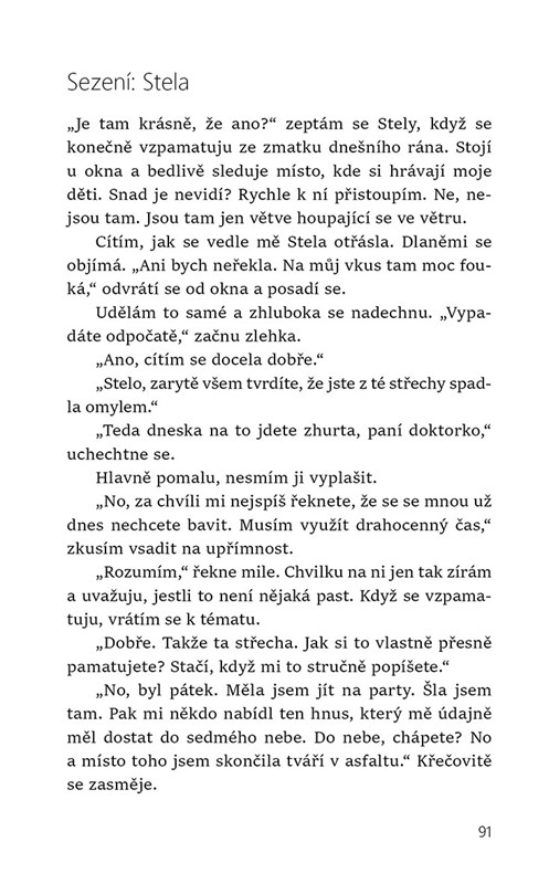 Vítejte na Tyrkysovém vrchu. Podobná slova byste pravděpodobně slyšeli, kdybyste se ocitli ve stejném zařízení jako Stela. V domě plném pomatenců. Jedinou vadou na kráse zdejší malebné scenérie jsou její obyvatelé. Stela má v počátku pocit, že mezi ně nepatří, ale čím víc je poznává, tím víc se tu cítí jako doma. A také ji nahlodává spousta otázek: Jak moc se vlastně liší od těch venku? Jsou skutečně tak jiní, nebo se na rozdíl od ostatních nechali zkrátka „chytit při činu“? Možná je bláznovství přirozený vývoj? Možná o našem duševním zdraví rozhodují čistě jen okolnosti, míra štěstí a náhoda? A koho vlastně ty zdi, dělící je od zbytku společnosti, chrání?