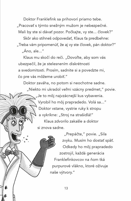 Stroj na strašidlá doktora Franklefinka zmizol! Tvojou úlohou je nájsť vinníka. Po boku svojho partnera, snežného muža Klausa, sa vyberieš po stopách podozrivých. Budete sledovať hrôzostrašného upíra či zlomyseľných škriatkov? Alebo sa radšej zameriate na prefíkané čarodejnice? Možno vás k zlodejovi privedie sledovanie doktorovho syna. O tom však rozhodneš TY!