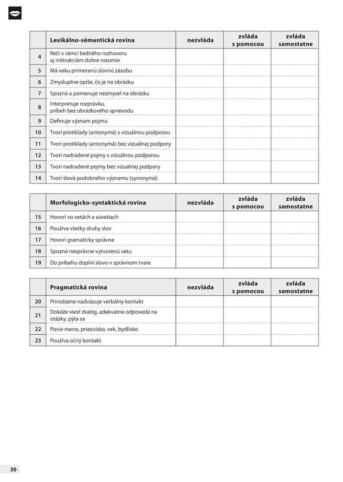 Publikácia môže dobre slúžiť aj učiteľkám materských škôl. Aj ony sa zaoberajú otázkou, čo je ešte potrebné ďalej trénovať v poslednom roku pred nástupom do školy, v ktorých oblastiach má dieťa menšie či väčšie prob-