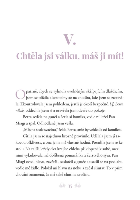 Mít starší sestru, která se najednou začne tak rychle a podivně měnit, je pěkná otrava! Protivná Albertýna chytla pubertu a naštvaná Apolenka je přesvědčená, že hůř už snad ani být nemůže… Jak se asi za takovýchto doslova bojových podmínek vydaří letošní pobyt ve stařičké Vile Augustě, kam obě udatné válečnice odjíždí s rodiči na jarní prázdniny? Rozhodně si během něj jedna od druhé nenechá nic líbit. V téhle „dívčí“ válce plné proradné lsti se zajatci prostě neberou, zato tu dochází k lámání kostí a na řadu přijdou i skutečné biologické zbraně… Oko za oko, zub za zub, sestřičko!