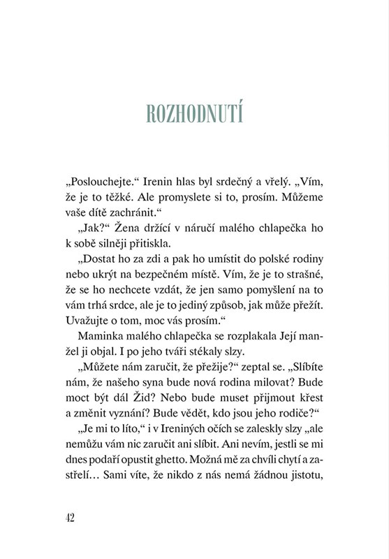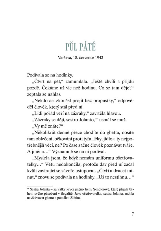 Hrdinství, s nímž Irena Sendlerová za války zachránila tisícovky židovských dětí, je čas od času zmiňováno v některých knihách, věnujících se ženským "rebelkám". Ale není jedna stránka pro tak výjimečný příběh málo? Je! Kniha s okouzlujícími ilustracemi Macieje Szymanowicze poutavě líčí ono Irenino dobrodružství uprostřed 2. světové války - a ukazuje malým i větším čtenářům, že hrdinou se může stát každý... Stačí jen chtít.