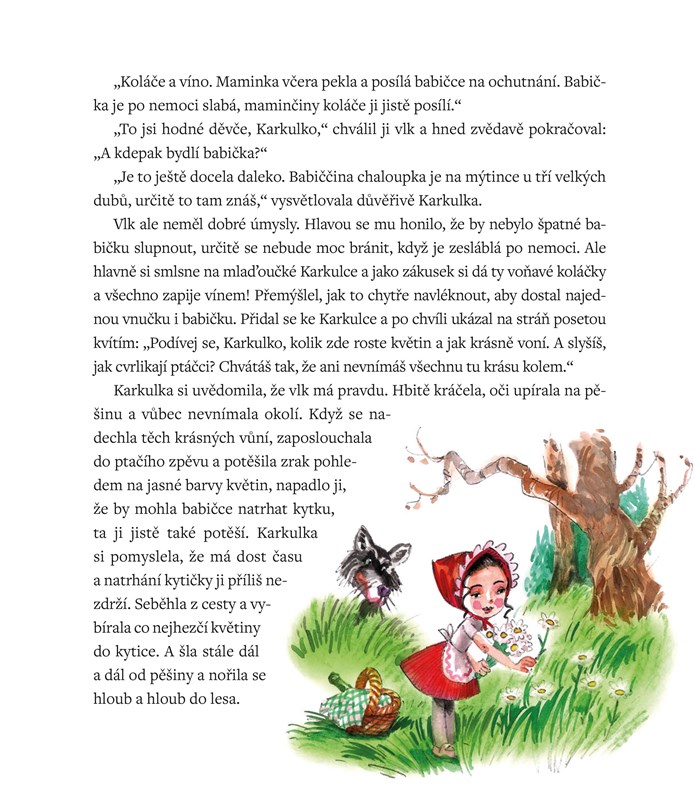 Nejznámější české pohádky, které doprovázejí milé ilustrace, pootevírají pohádkový svět našim nejmenším. Právě pro ně jsou v knize zařazeny většinou kratší příběhy, které nejsou tak náročné na dlouhé soustředění. Pohádky plné odvěké moudrosti, lidských tužeb a snů, které jsou předávány z generace na generaci. V knize najdete pohádky: O perníkové chaloupce, O veliké řepě, Červená karkulka, O koblížkovi, O neposlušných kůzlátkách, O Budulínkovi, O kohoutkovi a slepičce, O Smolíčkovi, Hrnečku, vař, Otesánek, O Palečkovi, Jak dědeček měnil, až vyměnil, O dvanácti měsíčkách, Sůl nad zlato, Chytrá horákyně.