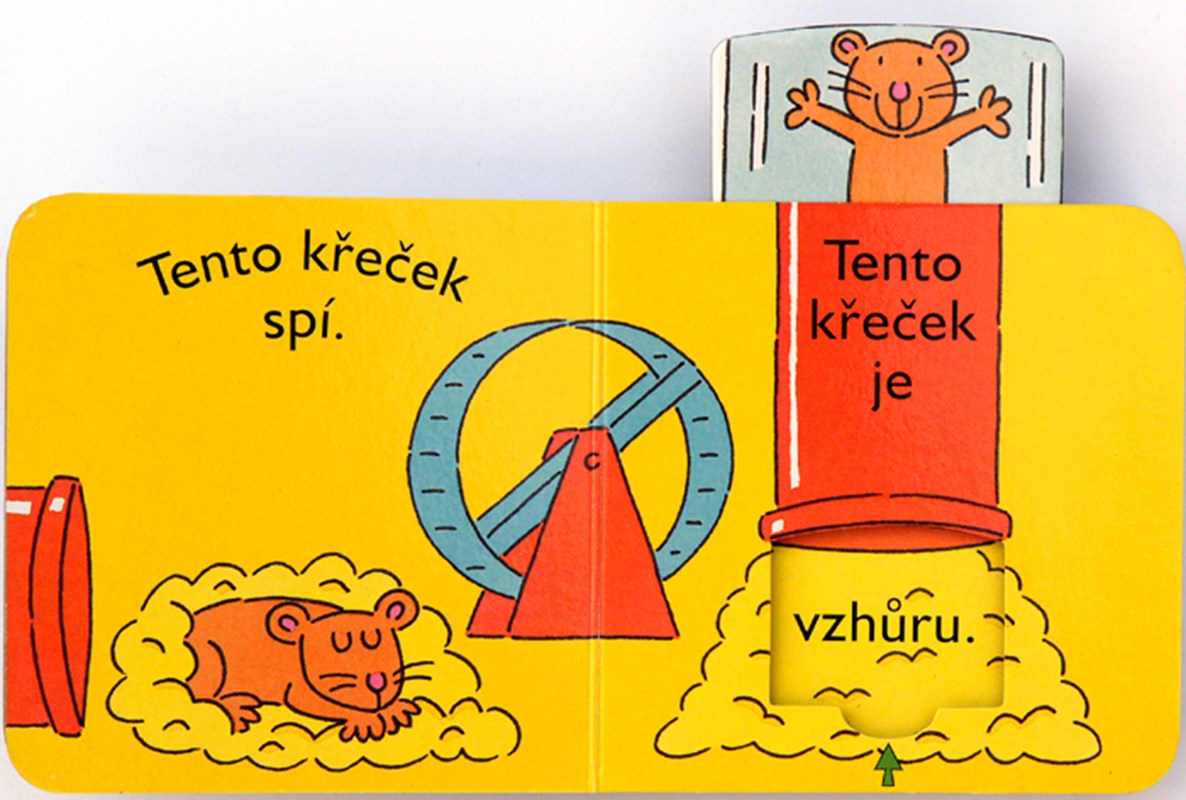 Interaktivní leporelo s posuvnými obrázky podporuje rozvoj zrakového vnímání, jemné motoriky a myšle...