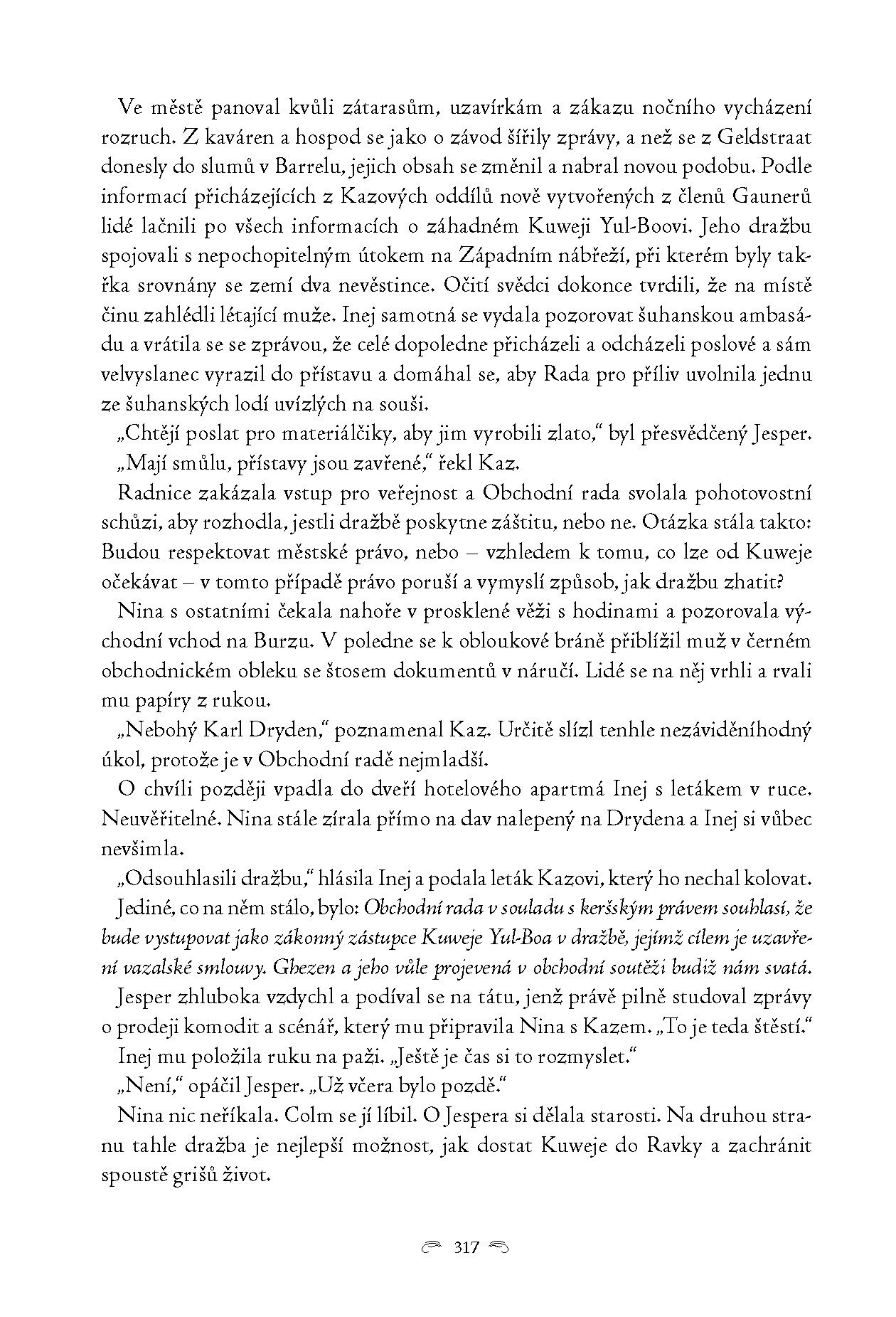V ulicích zkorumpovaného Ketterdamu se mezitím schyluje k válce. Nebezpečná droga jurda parem se stává předmětem hry o moc. Zkáza, kterou za sebou nechává, je děsivá.