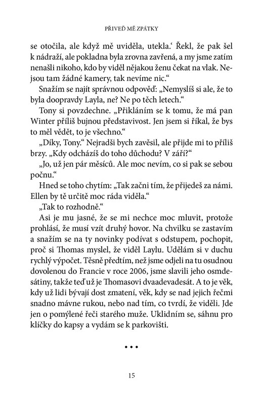 Jako rána z čistého nebe pak zapůsobil telefonát, že Laylu někdo spatřil. Kolem Finna se začnou objevovat dávno ztracené věci z Layliny minulosti, přicházejí anonymní e-maily. Finn nalézá tajné zprávy, různé stopy a varování. Co neznámý chce a kolik toho ví?