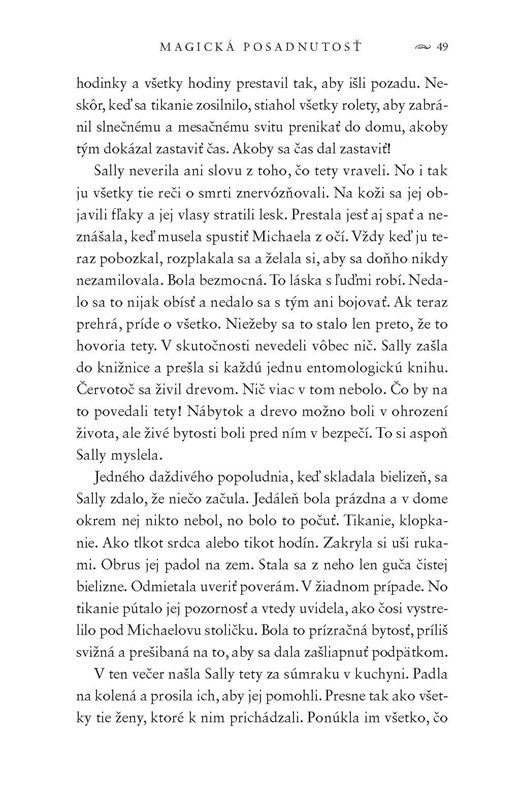 Príbeh v knihe, kde na stránkach cítiť magický realizmus, jemné zimomriavky, ktoré sa autorke podarilo vyčariť, pomaly, jemne plynúci dej je o ženách v rodine Owensových, ktorým už viac ako dvesto rokov, ľudia v meste pripisujú všetko zlé čo sa udialo. Všetci vedeli, že po zotmení nebolo múdre obchádzať ich dom, a len tí najpochabnejší susedia sa odvážili nazrieť cez železné zábradlie plota.