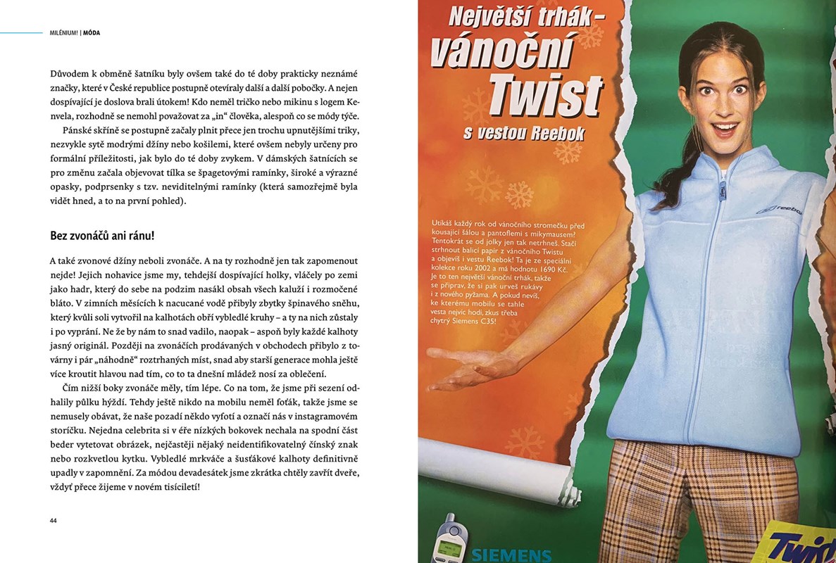 Ale nebojte, mnohem více témat vám naopak vyvolá úsměv na tváří. Při čtení zavzpomínáte třeba na už zmíněnou první řadu soutěže SuperStar nebo na operátory Oskar, Paegas a Eurotel, kteří nás zlákali k prvním mobilním telefonům. Na české vydání úvodního dílu Harryho Pottera, který předznamenal několikaletou potterovskou mánii. Na Banánové rybičky, ve kterých se s námi Halina Pawlowská loučila moudrem dne. Na pana Sponku, který nás otravoval pokaždé, když jsme otevřeli Word. A nebo třeba na Julius Meinl, Delvitu a Hypernovu, kam jsme rádi chodili nakupovat.