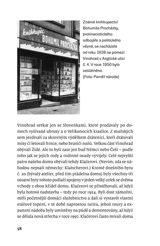 Byl jednou jeden dům… na rohu Mánesovy a Třebízského ulice na pražských Vinohradech. Strhující příběh nejen onoho domu a jeho obyvatel, ale i celé pražské čtvrti, zajímavých Vinohraďáků známých i méně známých a v neposlední řadě příběhy několika divadelních souborů s touto čtvrtí spjatých vypráví spisovatelka, ilustrátorka a divadelní umělkyně, která prožila v onom domě celý svůj život. A o tom, že překotná doba uplynuvších více než sta let strhující příběhy přímo vytváří, není pochyb!