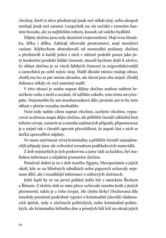 Kniha představuje fascinující cestu historií kriminality od biblických dob až po současnost. Přináší příběhy legendárních zločinců, jako byli pirát Černovous, Gilles de Rais nebo Andrej Čikatilo, i méně známé události, jako vlakové loupeže bratří Renů či krádež v Démantovém centru. Autor zkoumá proměny zločinu v kontextu doby a společenských změn, odhaluje jeho kořeny, důsledky a lidskou kreativitu, která často sloužila temným cílům.