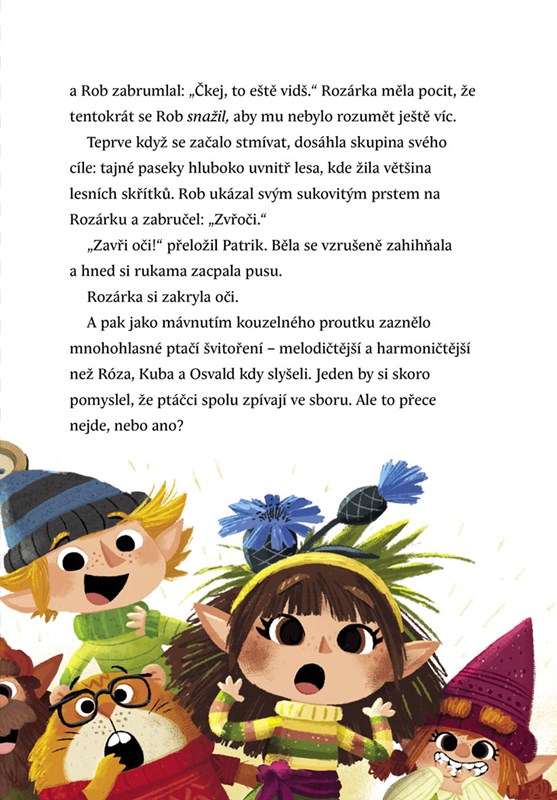 Zahradní skřítek Rozárka dostane nelehký úkol. Má zastoupit královnu lesních skřítků, která zmizela. Plna očekávání vyrazí se svými kamarády skřítkem Jakubem a křečkem Osvaldem do kaštanového lesa, aby spolu s lesními skřítky zařídila vše, co je třeba: vyčesat mech, natřít listy podzimními barvami a postarat se, aby příjemně šuměly. Zkrátka udělat vše proto, aby les bez královského vedení nezahynul.