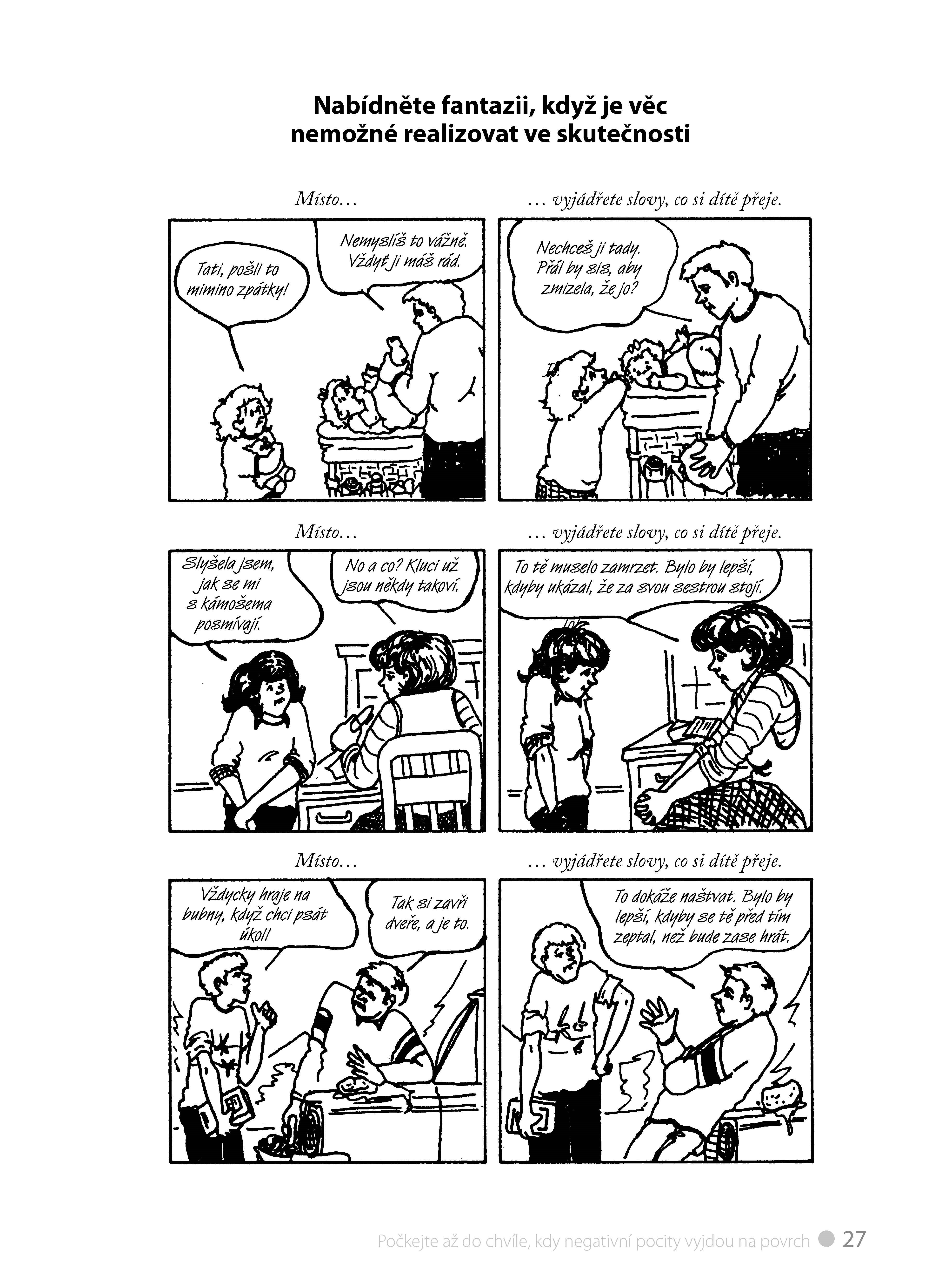 - Kreslené vzorové scénky s doporučenými dialogy, které vám pomohou vyřešit nejčastější situace.