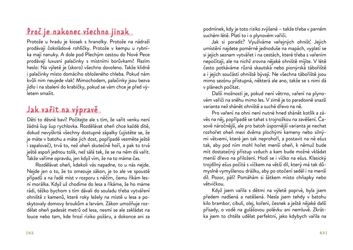 Auto nechte doma. Jedeme vlakem, jdeme pěšky. S batohem a svačinou, do lesa, do hor i kolem řek, v zimě i v létě. Opusťte na chvíli civilizaci a vezměte děti za dobrodružstvím, které čeká za humny. Naučíme se pátrat po turistických značkách, správně se sbalit na celý den, číst mapu, nebát se klíšťat i vařit na ohni. Možná jste si mysleli, že to nejde. Že když se narodí děti, bez auta se nehnete a bez kufru na kolečkách se nesbalíte. Jde to! A je to jednodušší, než se zdá…
