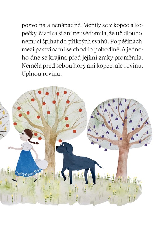 Marika bydlí ve vesnici vysoko v horách jen s přísnou tetou. Lidé tu musí tvrdě dřít, aby si vydobyli místo k žití, a jídla není nikdy dost. A tak když teta jednoho dne zjistí, že Marika tajně krmí potulného psa, v návalu zlosti ji vyhodí z domu. Marika se však nezalekne, vydá se na dalekou cestu k moři, o kterém jí kdysi vyprávěla maminka. Dojde statečné děvčátko šťastně k cíli?
