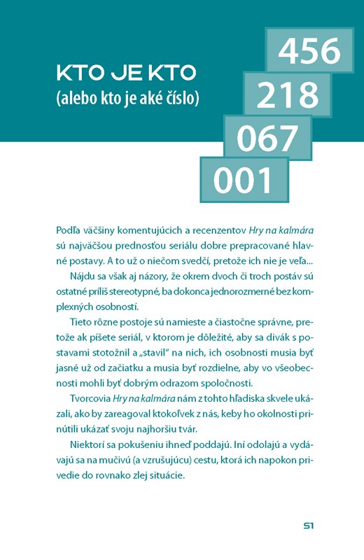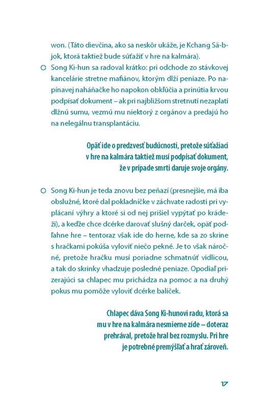 Chcete zistiť viac o hre na kalmára, o postavách a jednotlivých epizódach najsledovanejšieho seriálu Squid Game? Dozviete sa, čo viedlo a inšpirovalo jeho tvorcov, aké odkazy do seriálu ukryli a čo by nás mohlo prekvapiť v druhej sérii! Odhaľte konšpirácie ukrývajúce sa za príbehom seriálu Squid Game. Aký dopad mal na sociálne siete? Toto všetko a ešte viac prináša 100 % neoficiálny sprievodca seriálom Squid Game – netflixovej senzácie roku 2021, ktorá dominovala rebríčkom sledovanosti a získala niekoľko Zlatých glóbusov a množstvo ďalších ocenení a nominácií.