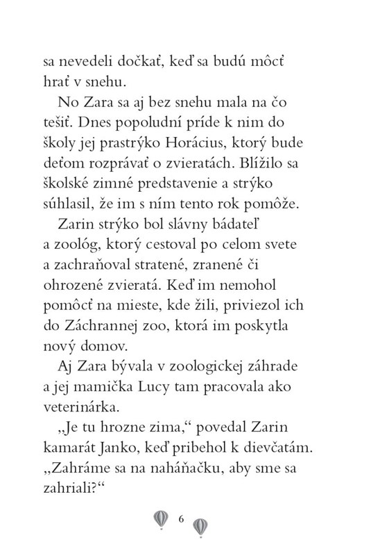 Zara miluje život v Záchrannej zoo, pretože sa v nej stále deje niečo vzrušujúce. Navyše má jedno úžasné tajomstvo… dokáže sa rozprávať so zvieratami!