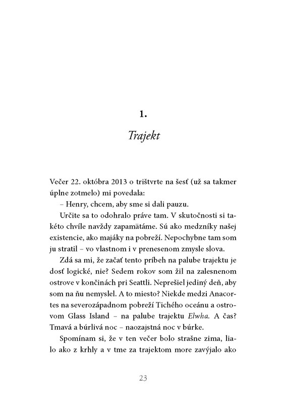 Les a hmla všade naokolo. KaĹľdĂ˝ pozná kaĹľdĂ©ho a sĂşkromie je ÄŤistou ilĂşziou. To je malĂ˝ ostrov Glass Island, kde Ĺľije šestnásĹĄroÄŤnĂ˝ Henry a kde bola zavraĹľdená jeho priateÄľka. Kto je vrah? Minier tentoraz opúšťa Martin Servaza, Toulouse aj Pyreneje a zavedie ÄŤitateÄľa na sever od Seattlu, kde sa tiahne reĹĄazec len trajektom prĂstupnĂ˝ch ostrovov, veÄŤne zahalenĂ˝ch do ponurej hmly. Svoje rozprávanie tentoraz opiera o napĂnavĂ˝, temnĂ˝ a poriadne skurvenĂ˝ prĂbeh...