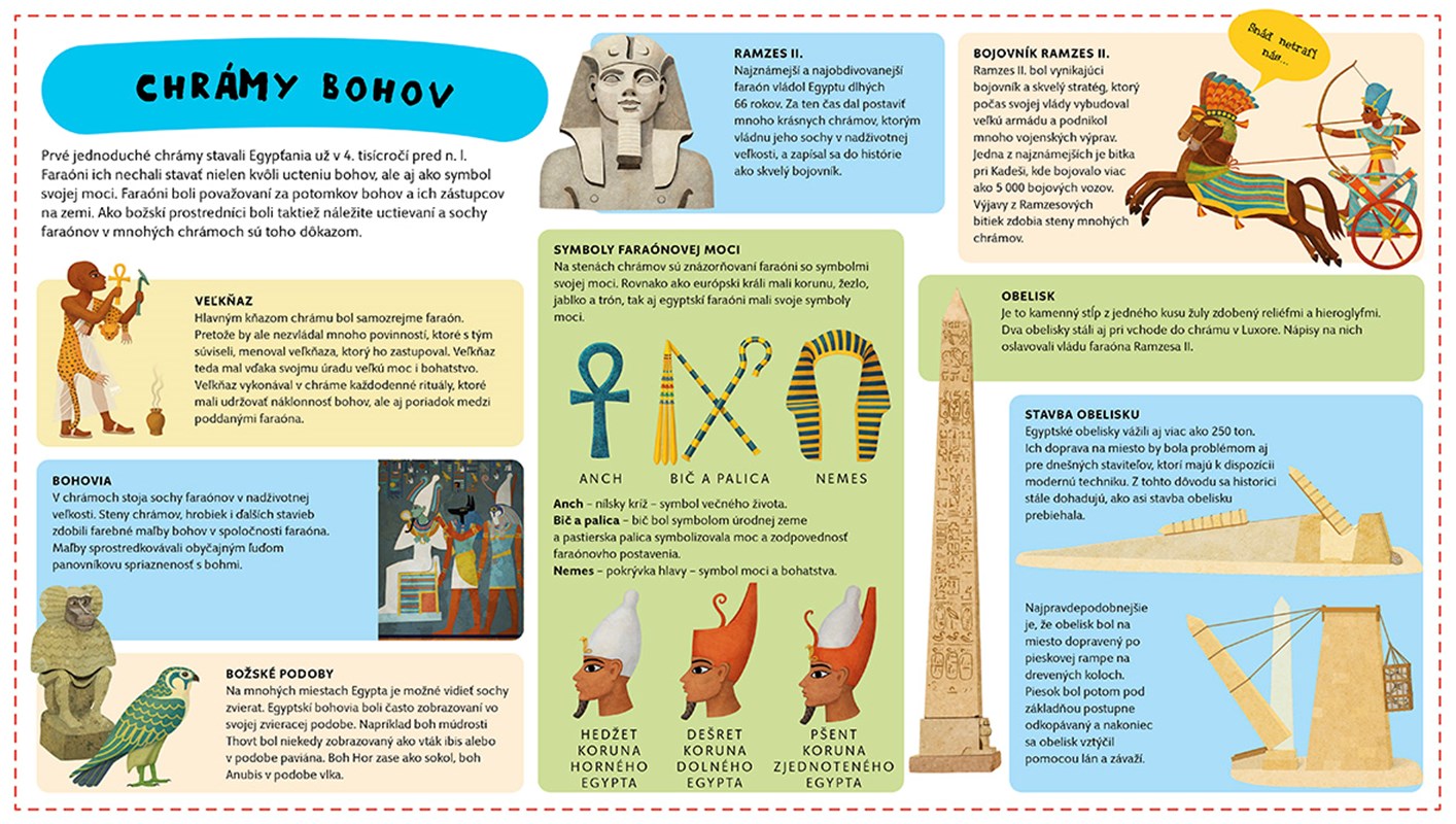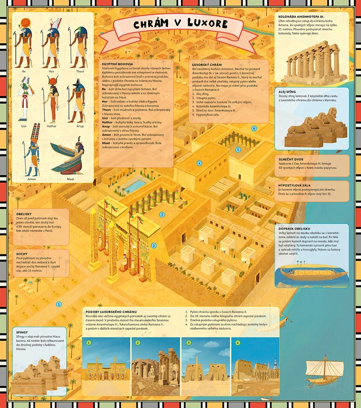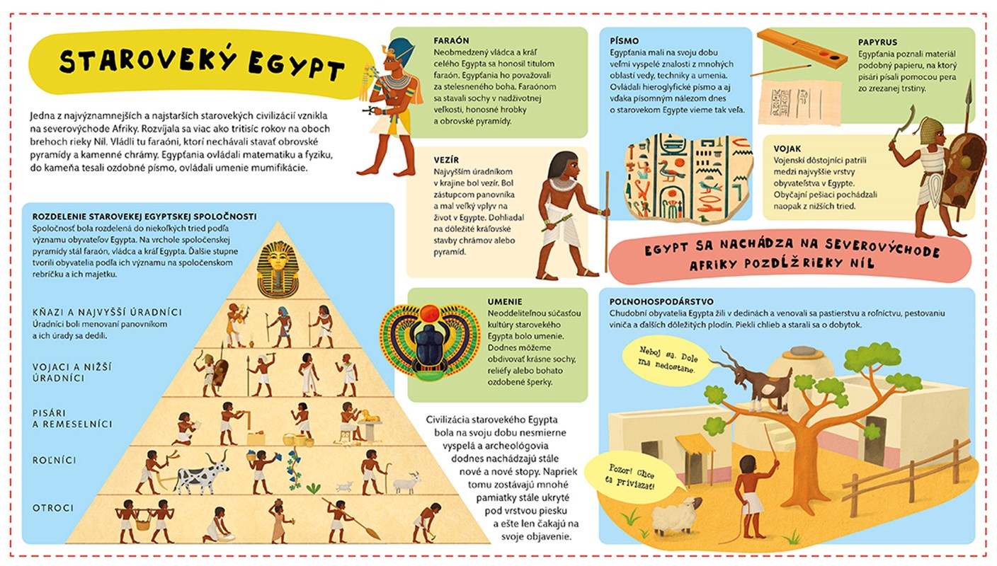 Pred viac ako päťtisíc rokmi sa pozdĺž rieky Níl vyvinula civilizácia, ktorej pamiatky a pozostatky dodnes chodia obdivovať ľudia z celého sveta. Nádherné obrovské pyramídy, kamenné chrámy, vyzdobené hrobky, sochy panovníkov v nadživotnej veľkosti, vysoké stĺpy, obelisky a ďalšie pripomienky nájdeme v Egypte na každom kroku. Napriek tomu mnoho pamiatok stále čaká na vyslobodenie z afrického piesku a dodnes nie je úplne jasné, ako mohli egyptskí stavitelia vytvoriť také veľké a krásne stavby s vtedajšími technickými možnosťami. Poďme sa poprechádzať po najkrajších egyptských pamiatkach a spoločne sa pozrime, ako sa v starovekom Egypte žilo faraónom, úradníkom, vojakom aj obyčajným ľuďom.