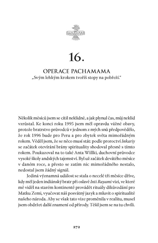 Spisovatel Hernán Mamani prožil velkou část života jako obchodník v peruánské Limě. Když však vážně onemocněl a tradiční medicína mu nedokázala pomoci, vrátil se do své rodné vesnice v Andách. Díky svému otci podstoupil přírodní léčbu a absolvoval rituály, které ho uzdravily a přiměly naslouchat Matce Přírodě. Hernán tak pochopil, co se děje se Zemí, jak ji člověk zraňuje a že je nutné obrátit se zpět k Pachamamě, naslouchat jí a nechat se vést.