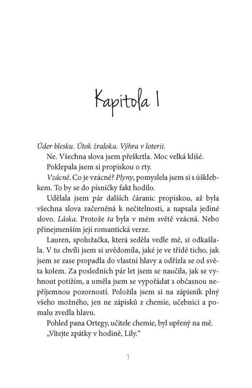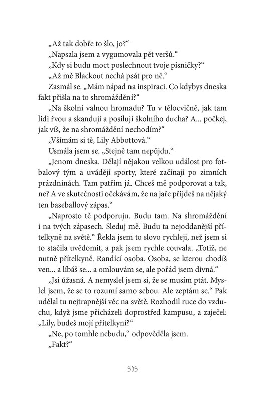 Brzy už si se svým anonymním přítelem vyměňují dlouhé dopisy, doporučují si vzájemně kapely a sdílí ta nejsoukromější tajemství. Lily si uvědomí, že se do tajemného neznámého postupně zamilovává. Ale kdo to je? Zatímco se snaží rozluštit tuhle záhadu a vypořádat se s problémy se školou, kamarády i se svou bláznivou rodinou, zjistí, že o některých srdečních záležitostech se prostě psát nedá…