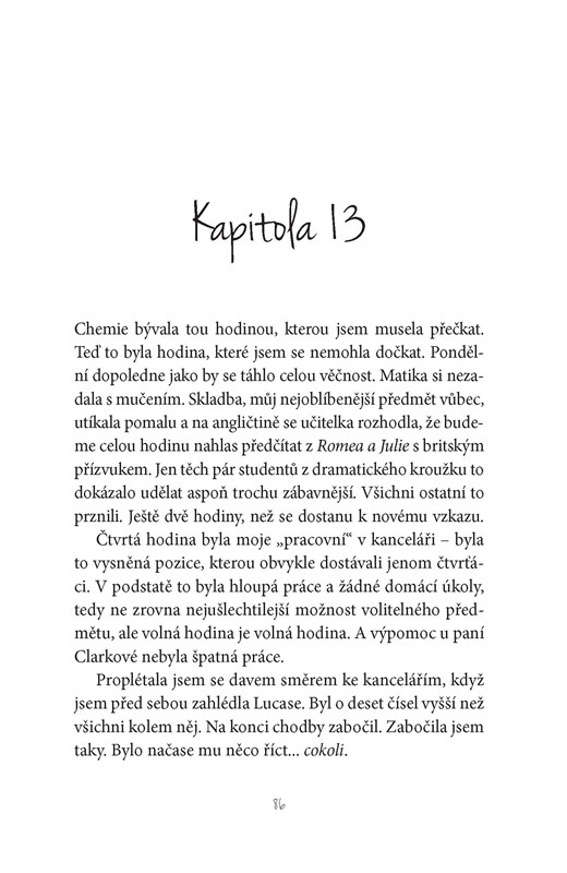 Lily při jedné obzvláště nudné hodině chemie nedává pozor a čmárá si na lavici slova své oblíbené písničky. Když se druhý den vrátí na svoje místo ve třídě, zjistí, že někdo rozepsanou sloku dokončil, a ještě přidal vzkaz pro ni. Zajímavé!