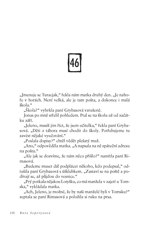 Píše se rok 1941. Lině je patnáct let a těší se, že po prázdninách půjde na uměleckou školu. Ale jednoho večera k nim domů vrazí sovětská tajná policie a společně s její matkou a malým bráškou ji odvlečou pryč. Čeká je deportace do pracovních táborů na Sibiři.